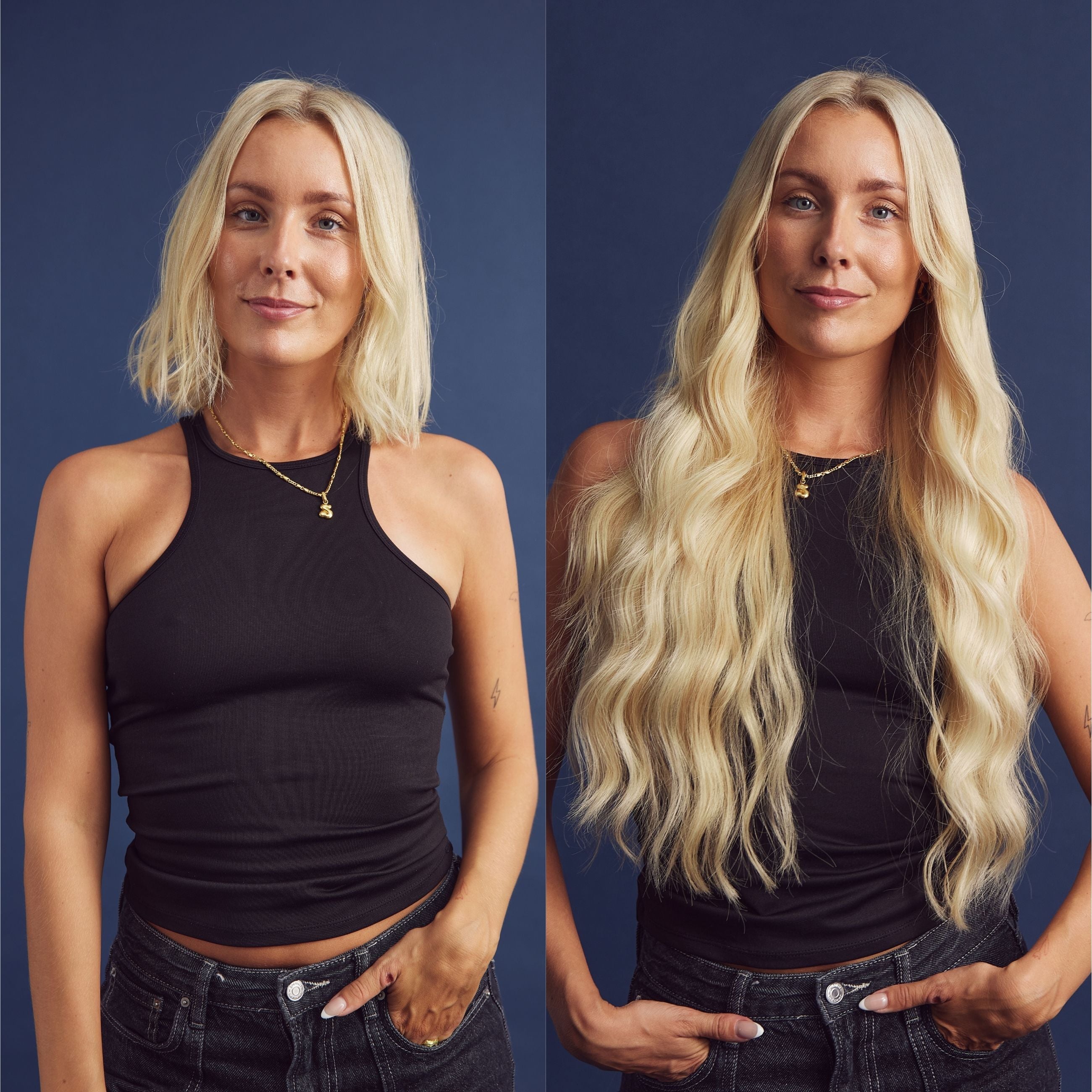 Wszystkie nasze przedłużane włosy wykonane są w 100% z naturalnych włosów, co oznacza, że można je stylizować na ciepło tak jak swoje naturalne włosy. I możesz to zrobić, niezależnie od tego, czy wybierzesz jakość Original, czy Luxury.