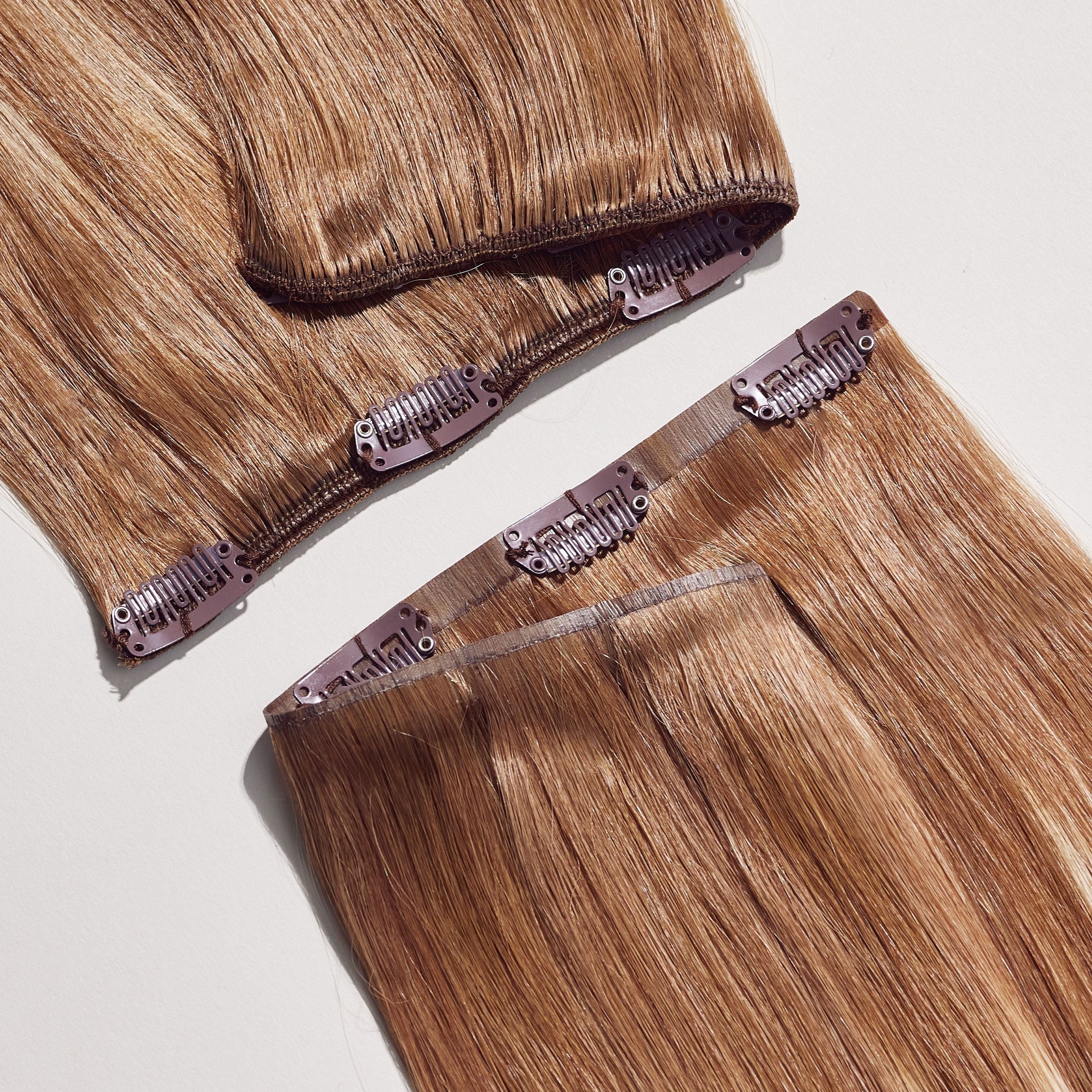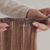 Niewidoczne włosy clip in zostały stworzone dla osób, które chcą uzyskać naturalny efekt przy minimalnym wysiłku. Pasma mają cienką, niewidoczną krawędź, która przylega płasko do skóry głowy i perfekcyjnie wtapia się w Twoje włosy, co sprawia, że świetnie sprawdzają się szczególnie przy włosach cienkich i delikatnych.